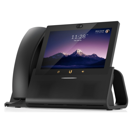 Popis produktu Ubiquiti Phone Touch Max je novou generací VOIP stolních telefonů. Telefon je ovládán pomocí 7" displeje s rozlišením 1280 x 800 HD, který podporuje technologii Multi-touch. Pro připojení jsou k dispozici 2 gigabitové LAN porty. Na boku telefonu je tlačítko pro rychlé vypnutí mikrofonu. Telefon lze napájet pomocí PoE+ nebo USB-C s maximální spotřebou 5 W.  Klíčové vlastnosti 7" dotykový displej 5MP videokamera Tlačítko pro vypnutí mikrofonu Napájení pomocí USB-C a PoE+.
