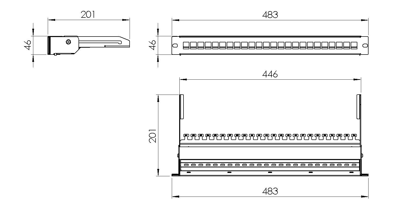 Nestienený 24portový patch panel pre UTP/FTP, rozťahovacíVeľkosť: 1U