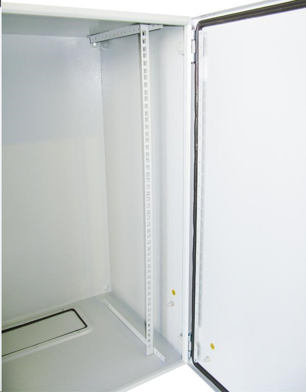 Vonkajší stenný rozvádzač vyrobený z valcovanej ocele s hrúbkou 1,5 mm. Trojvrstvová povrchová úprava.