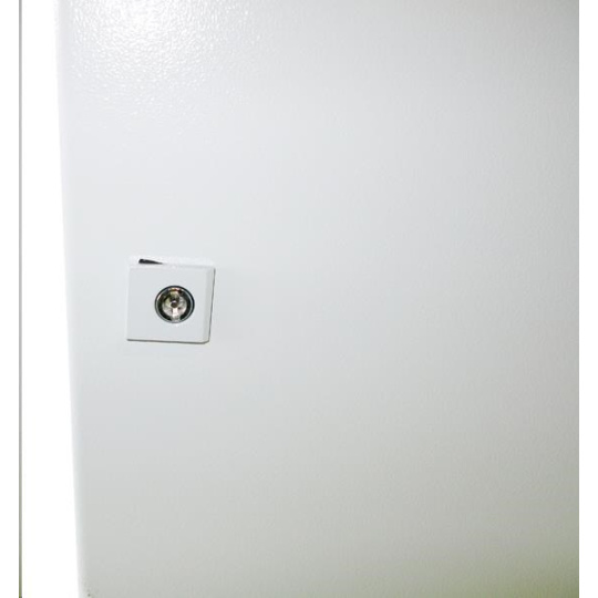 Vonkajší nástenný rozvádzač vyrobený z válcovanej ocele s hrúbkou 1,5 mm. Trojvrstvová povrchová úprava. Vlastnosti: dvere - plné, otvárateľné o 110°, výmena smeru otvárania, tesnenie z penového polyuretánu zadný kryt - plný bočný kryt - plný horný kryt - plný