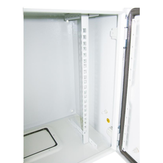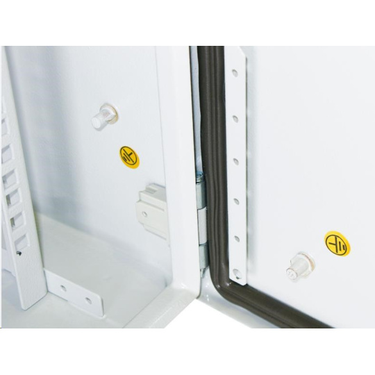 Vonkajší nástenný rozvádzač vyrobený z válcované ocele s hrúbkou 1,5 mm. Trojvrstvová povrchová úprava. Vykonanie: dvere - plné, otvárateľné o 110°, zameniteľný smer otvárania, tesnenie z penového polyuretánu zadný kryt - plný bočný kryt - plný horný kryt - plný