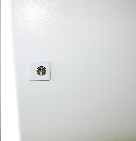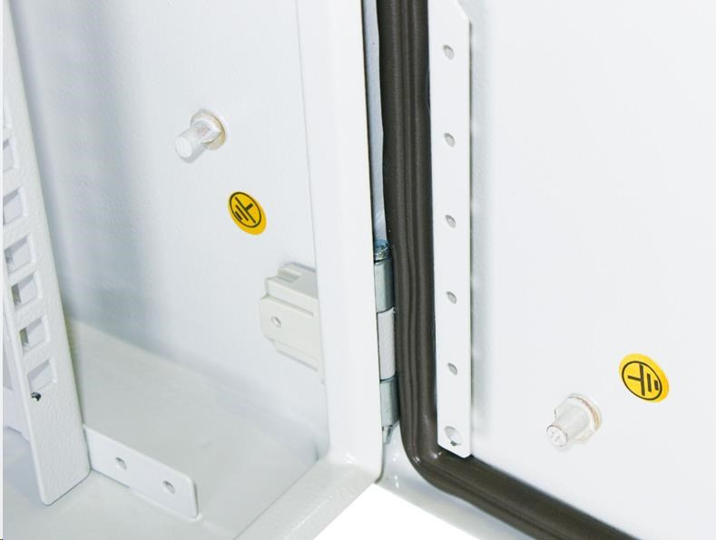 Vonkajší nástenný rozvádzač vyrobený z válcované ocele s hrúbkou 1,5 mm. Trojvrstvová povrchová úprava. Vykonanie: dvere - plné, otvárateľné o 110°, zameniteľný smer otvárania, tesnenie z penového polyuretánu zadný kryt - plný bočný kryt - plný horný kryt - plný
