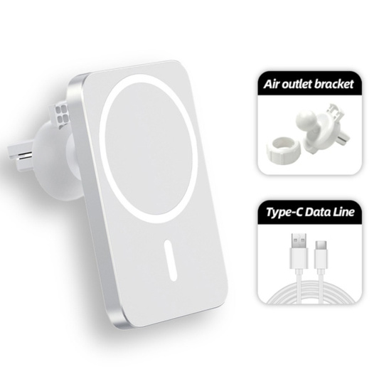 Vysoko kvalitná výkonná bezdrôtová magnetická nabíjačka do auta s podporou Apple MagSafe. Vybavená dvomi držiakmi, môžete si vybrať buď variant do ventilácie, alebo otočný a výsuvný držiak s prísavkou.