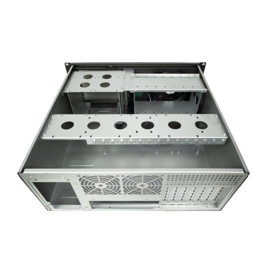 IPC 4U-450 je vysokokvalitná serverová skriňa určená na montáž do 19" racku. Skriňa je vyrobená z 1,2 mm hrubého plechu, ktorý sa v dnešnej dobe vyskytuje len zriedkavo. Predný panel je zakrytý uzamykateľnými kovovými výklopnými dvierkami. Keď je panel zatvorený, cez priehľadnú časť dvierok sú viditeľné len kontrolky LED. Po otvorení dverí sú k dispozícii ostatné ovládacie prvky.