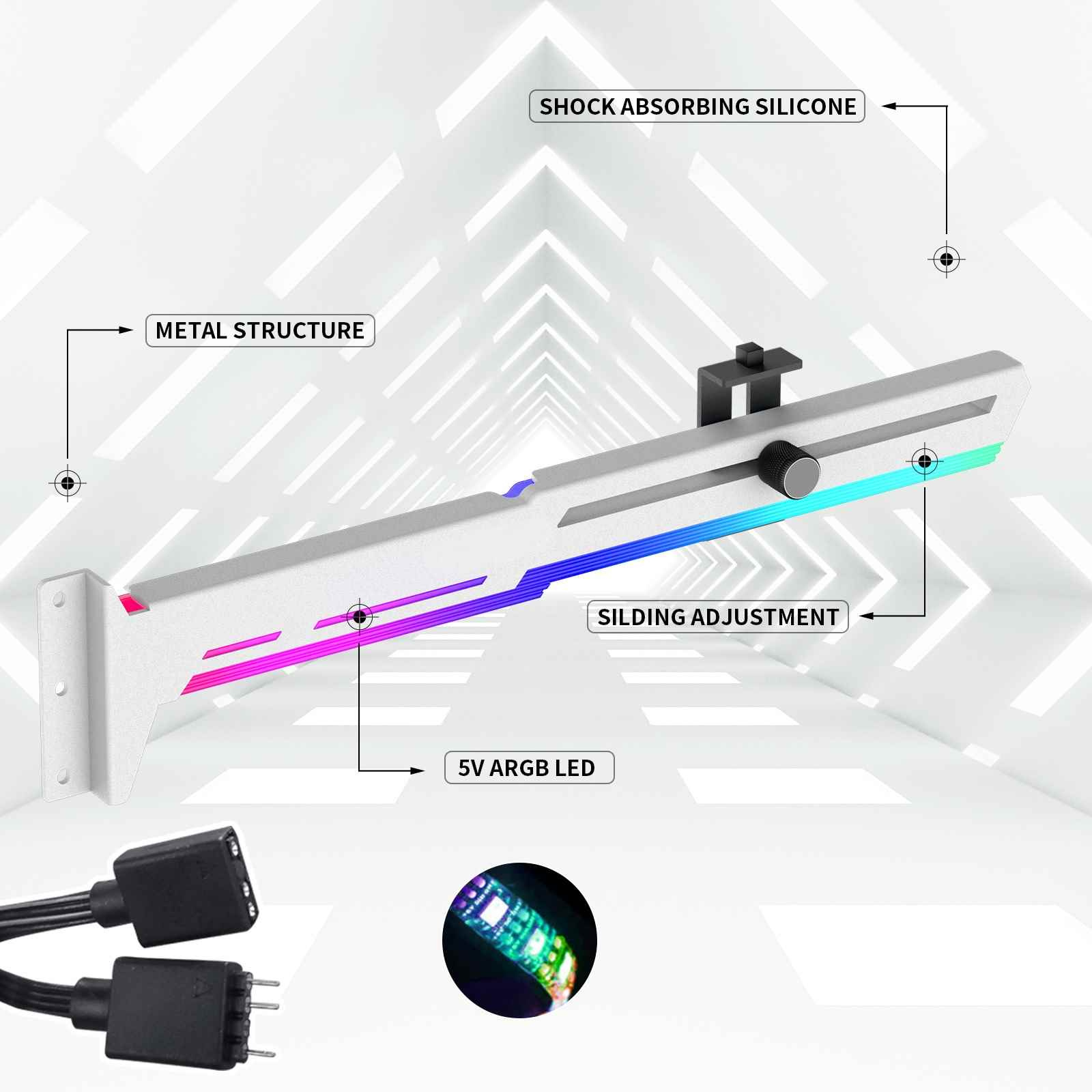 1stCool Podpěra GPU Kovový držák ARGB, bílá