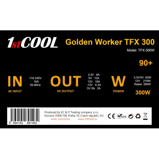 1stCOOL Zdroj Golden Worker TFX 300 88+, 300W, TFX, černá