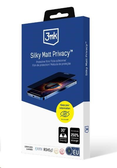 Privátna fólia 3mk Silky Matt Privacy™ účinne chráni obsah zobrazený na obrazovke pred nechcenými pohľadmi tretích strán. Rozmazáva a ztmavuje obraz z uhla 30o. Svoj smartfón môžete bez stresu používať v autobuse, v kancelárii, v čakárni alebo v kaviarni. Len vy jasne vidíte, čo je na displeji. Dôverné informácie si ponecháte výlučne pre seba.