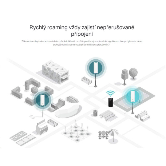 - Rýchly roaming vždy zabezpečí neprerušené pripojenie: Používatelia sa môžu spoľahnúť na jednoduché prepínanie svojich zariadení medzi prístupovými bodmi pri pohybe po dome alebo napríklad medzi kanceláriami.