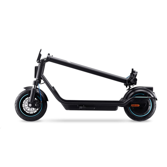 Prekážky zdolávajte s neochvejnou istotou a bezkonkurenčnou stabilitou vďaka 10“ bezdušovým pneumatikám a odpruženiu prednej vidlice, ktoré funguje ako tlmič nárazov.