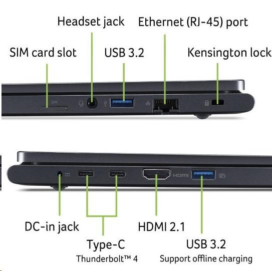 2x USB Type-C port USB 3.2 Gen2 (až 10 Gbps) / Display port over USB-C / Thunderbolt 4 / USB nabíjanie 5 V; 3 A / DC-in port 20 V; 65 W s podporou USB Type-C dokovacej stanice