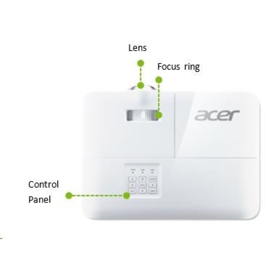 ACER Projektor S1387n, ShortThrow, WXGA (1280x800), 4000 ANSI, 20 000:1, VGA, HDMI, RJ45, repro 1x16W, 3.1Kg, LumiSense,