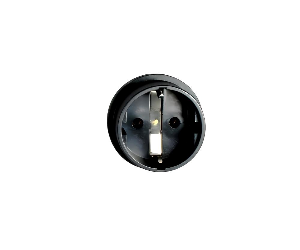 Napájací adaptér v čiernom prevedení pre UPC, s vstupným konektorom IEC C14 (max. 10 A) a výstupnou zásuvkou SCHUKO CEE 7/3 (max. 16 A). Výstupná zásuvka je rovná, nemeckého typu, s ochrannými náramkami po stranách, vhodná na pripojenie vidlíc vybavených zemniacimi náramkami. Je veľmi dôležité zabezpečiť, aby prúd odobraný zo zásuvky nikdy neprekročil 10 A, aby nedošlo k preťaženiu vstupného konektora C14.