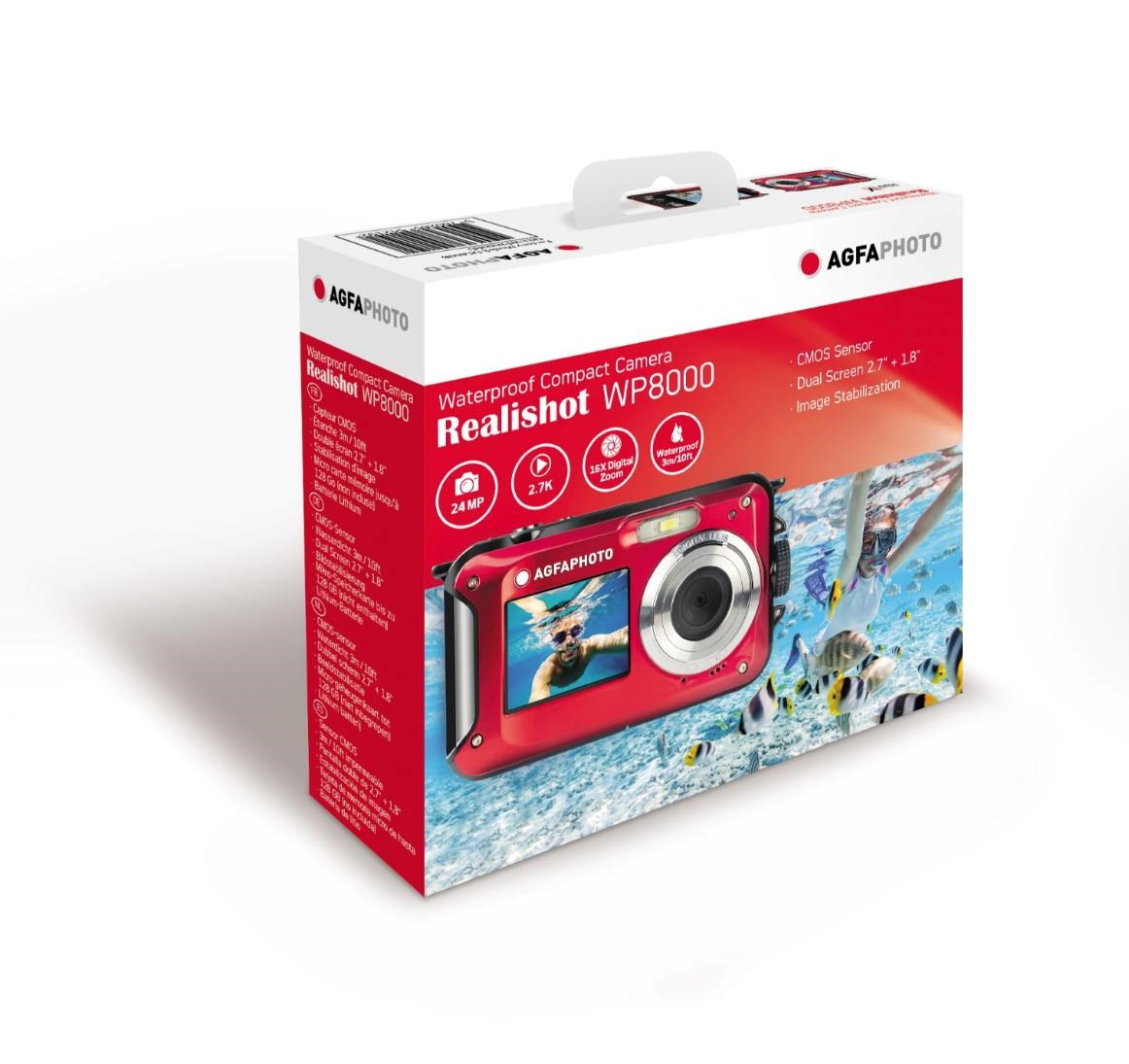 Morské vlny, sneh alebo dokonca dážď? Fotoaparát Realishot WP8000 je vhodný za každého počasia. Môžete ho tiež využiť na fotografovanie i natáčanie videa až do hlbky 3 m. Vďaka kompaktným rozmerom, lítiovej batérii a ochrannému krytu je ideálny na cestovanie.
