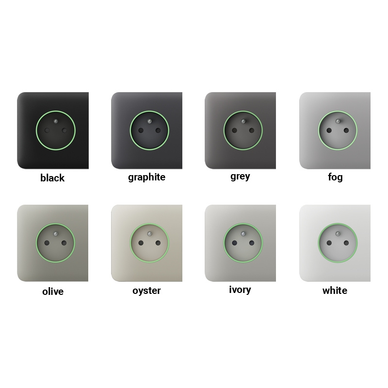 Zásuvky je možné používať samostatne alebo ich kombinovať s chytrými vypínačmi LightSwitch a inštalovať do rámčeka. Prístroje majú rovnaký dizajn rámčeka a farebné odtiene.