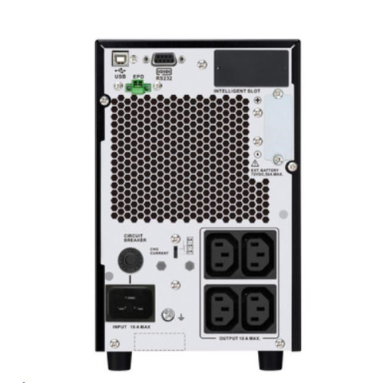 | Poskytované vybavenie | 1 IEC 60320 C19 na Schuko napájací kábel 1 IEC 60320 C13 na C14 napájací kábel 1 USB kábel 1 Konfiguračný kábel RS-232 1 externý batériový modul 1 kábel batérie užívateľská príručka |