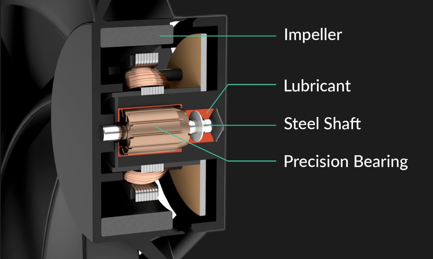 • HIGH-QUALITY BEARING - Thanks to an alloy/lubricant combination developed in Germany, friction inside the bearing is reduced and higher efficiency is achieved. In this way, less heat develops, there is less bearing noise and the fan life is extended.