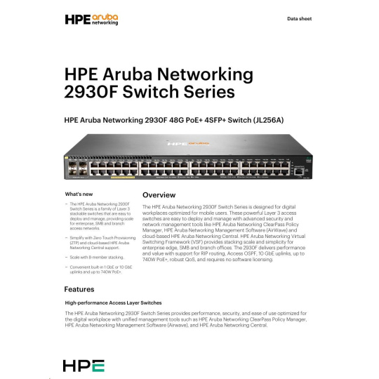 Aruba 2930F 48G PoE+ 4SFP+ Swch RENEW JL256A.