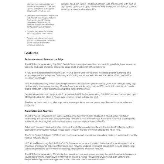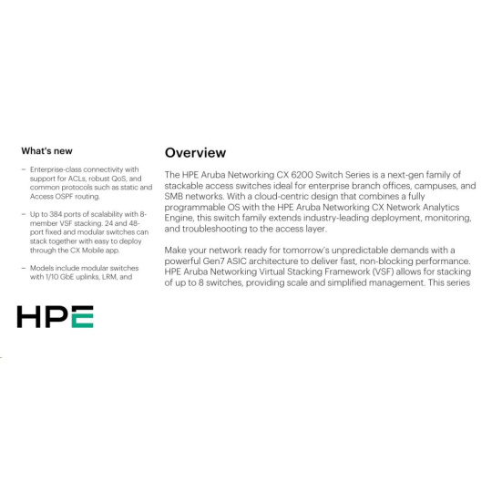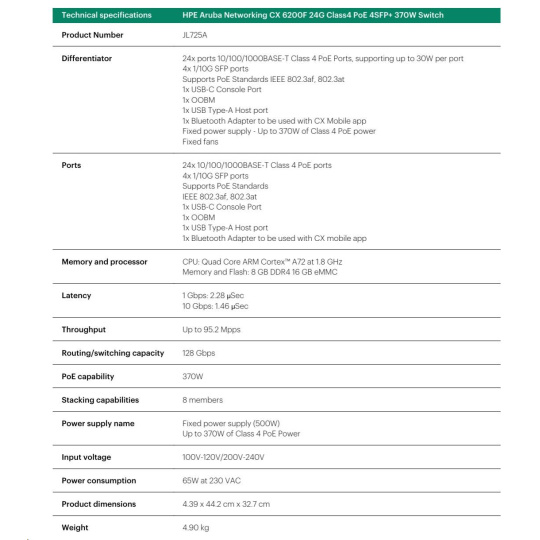 HPE Aruba Networking CX 6200F 24G Class4 PoE 4SFP+ 370W Switch JL725A RENEW