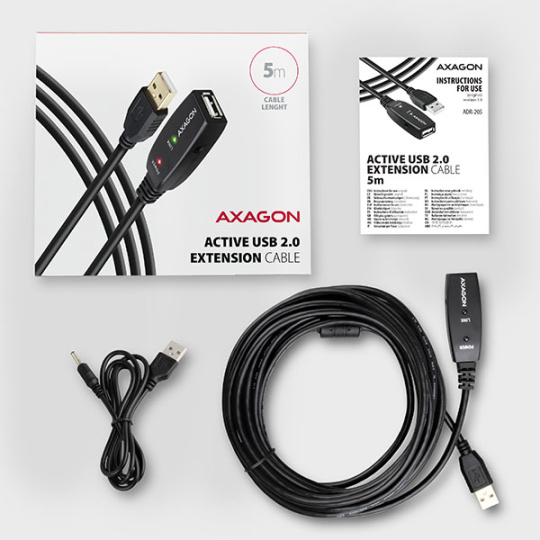 AXAGON ADR-205, USB 2.0 A-M -> A-F aktívny predlžovací / repeater kábel, 5m