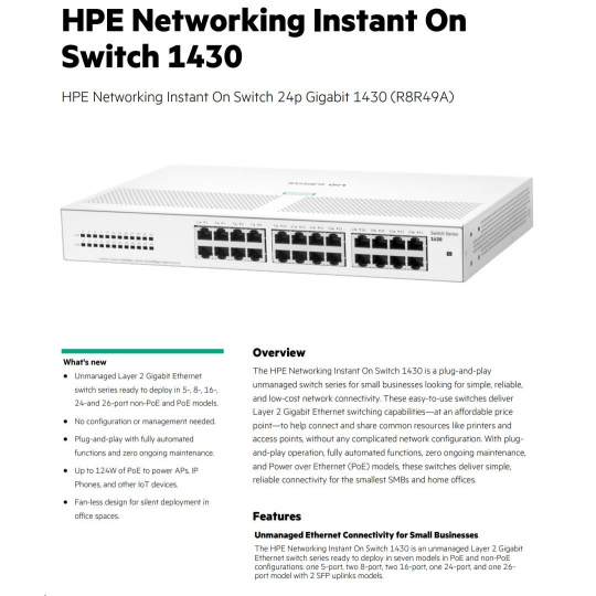 HPE Networking Instant On Switch 24p Gigabit 1430 R8R49A
