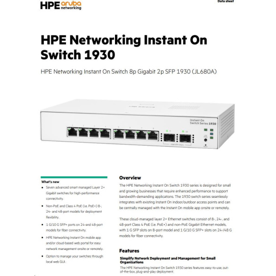 | JL680A - Aruba Instant On 1930 8G 2SFP Switch | |