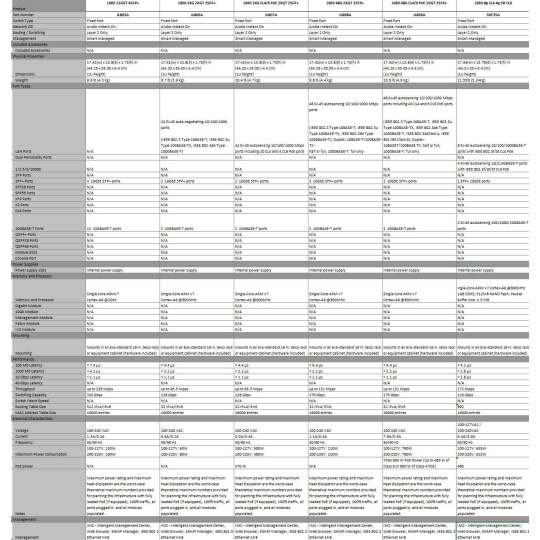 Notes1: 1 Acoustics measured in 23°C semi-anechoic chamber with a loading of 100% traffic and (for JL807A and JL809A) 50% PoE on all ports. Measured in accordance with ISO 7779. Declared in accordance with ECMA-109:2010. Values presented are the Declared A-Weighted Sound Power Level (LWAd) and the mean Bystander A-Weighted Sound Pressure Level (LpAm)