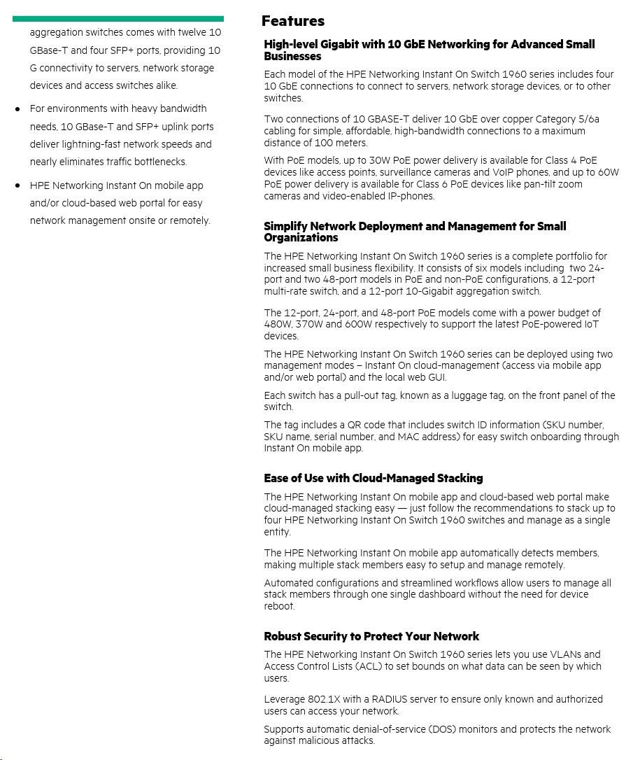 HPE Networking Instant On Switch 20p Gigabit CL4 4p Gigabit CL6 PoE 2p 10GBT 2p SFP+ 370W 1960 (JL807A).