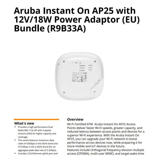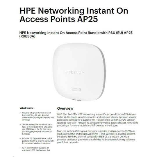 HPE Networking Instant On Access Point Bundle with PSU (EU) AP25 (R9B33A)