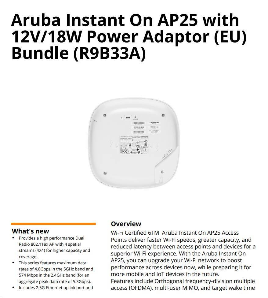 HPE Networking Instant On Access Point Bundle with PSU (EU) AP25 (R9B33A)