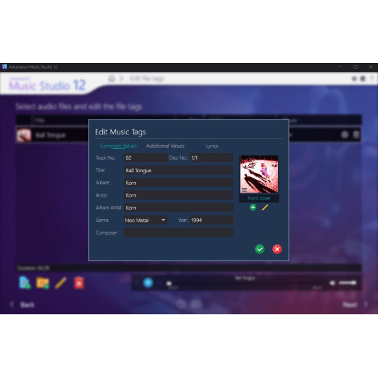Štítky obohacují vaše skladby o detaily, jako je interpret, žánr atd. Ashampoo Music Studio 11 podporuje 18 různých typů štítků pro ještě smysluplnější metadata – lahůdka pro perfekcionisty a opravdové milovníky hudby!