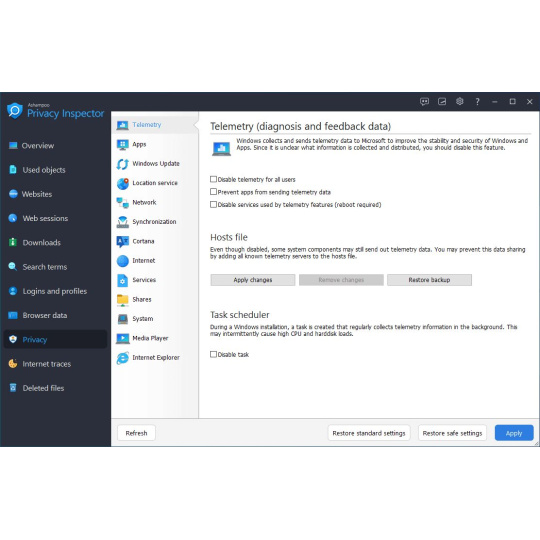 Ashampoo Privacy Inspector obsahuje všetko, čo potrebujete na obmedzenie nadmerného zhromažďovania údajov systémom Windows. Vypnite telemetriu a lokalizačné služby, vypnite synchronizáciu hesiel a vypnite Cortanu. A ak používate tablet na používanie rukopisu v systéme Windows, možno vás bude zaujímať, že systém Windows odosiela aj vzorky rukopisu, takže nezabudnite vypnúť aj túto funkciu! Stačí pár kliknutí.
