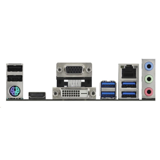 | Vstupy/výstupy na zadnom paneli | - 1 x port PS/2 pre myš/klávesnicu - 1 x port D-Sub - 1 x port DVI-D - 1 x port HDMI - 2 x USB 2.0 Porty (podporuje ochranu proti ESD) - 4 x USB 3.2 porty Gen1 (podporuje ochranu proti ESD) - 1 x port RJ-45 LAN s LED diódou (ACT/LINK LED a SPEED LED) - HD audio konektory: Line in / Predný reproduktor / Mikrofón |