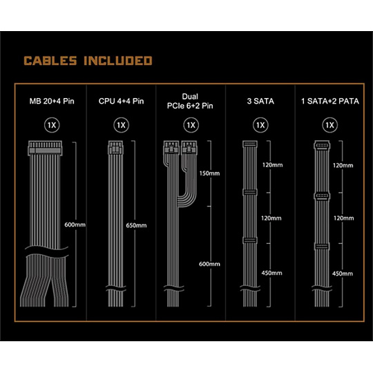 | DUAL PCIe 6+2pin Konektor | 2x / 2x (600 + 150 mm) |