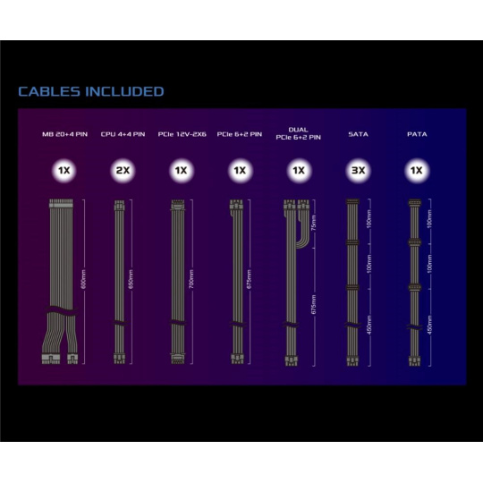 | Dvojitý PCIe 6+2 Pin Konektor | 1x / 2x (675 + 75 mm) |