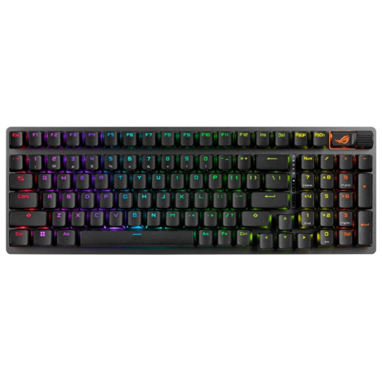 - Unikátny medzerník s motívom ROG: UV potiahnutý medzerník so špeciálnym označením ROG a tromi RGB LED diódami na spodnej strane