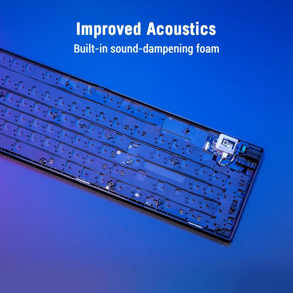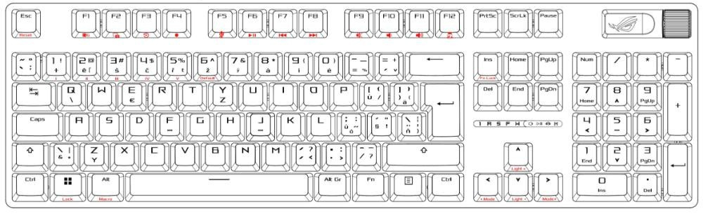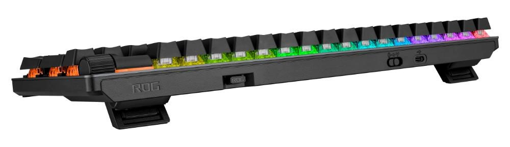 - Unikátny medzerník s motívom ROG: UV potiahnutý medzerník so špeciálnym označením ROG a tromi RGB LED diódami na spodnej strane
