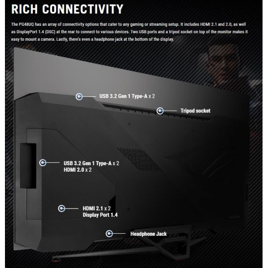 ASUS LCD 47.5" PG48UQ 3840x2160 ROG Swift OLED GAMING 4K, OLED, 450cs, 138Hz, 0.1ms, repro 10W, HDMI DP USB vesa 30x30