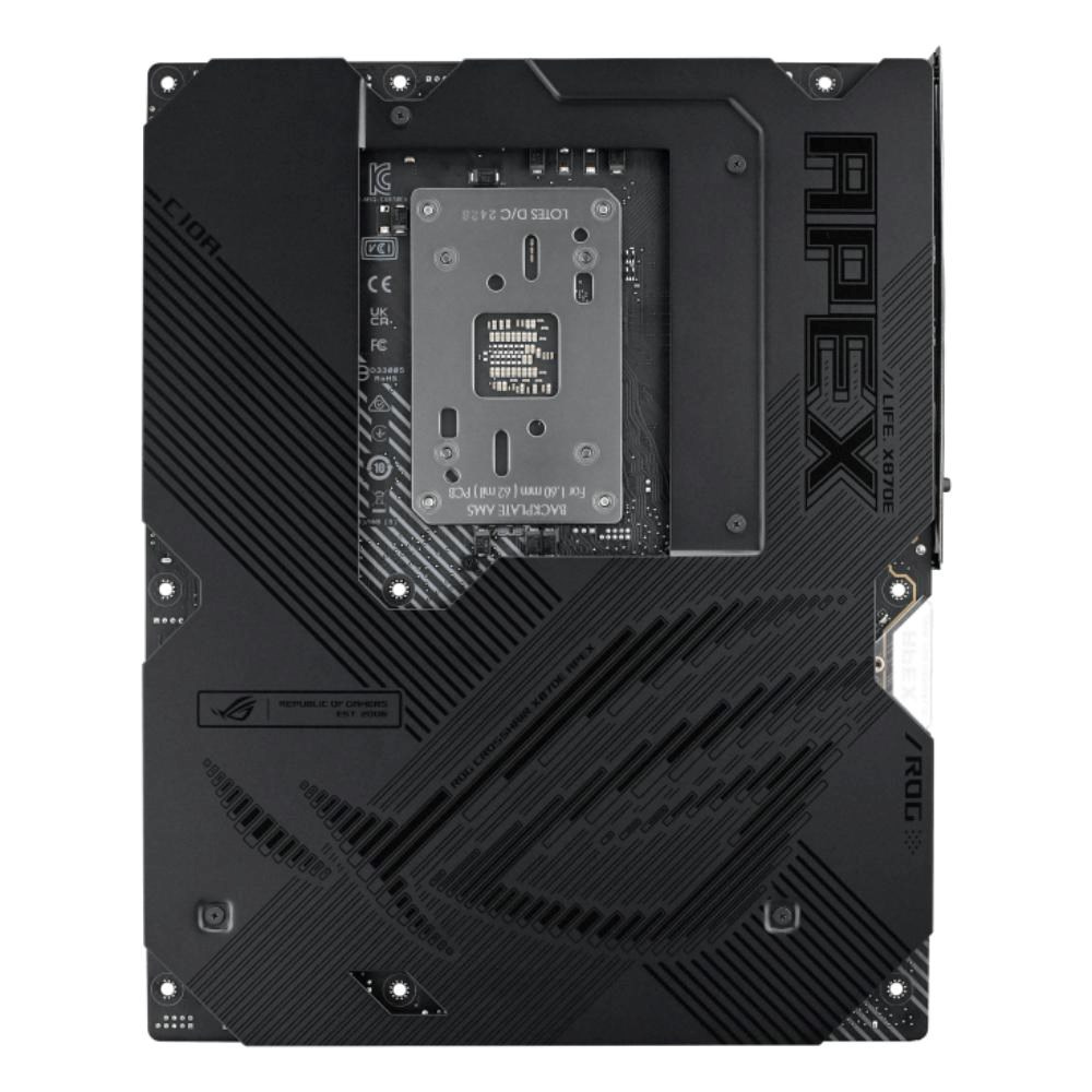 AMD X870E (AM5 Socket) ATX motherboard, Advanced AI PC-ready, 18+2+2 power stages, Dynamic OC Switcher, Core Flex, DDR5 slots with AEMP, ROG Memory Fan Kit for DDR5 overclocking, Wi-Fi 7 with ASUS WiFi Q-Antenna, three PCIe 5.0 M.2 slots onboard, two PCIe 4.0 slots on an ROG DIMM.2 card, PCIe 5.0 x16 SafeSlots with PCIe Slot Q-Release Slim and full support for next-gen graphics cards, two USB4 ports, two USB 20Gbps Type-C front-panel connectors (one with Quick Charge 4+ up to 60W and USB Wattage Watcher), AI Overclocking, AI Cooling II, and AI Networking II
