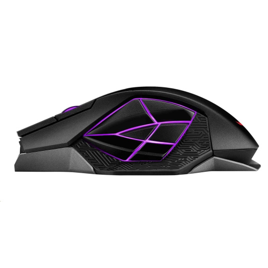 - Aura Sync RGB - Integrované osvetlenie Aura RGB mení farbu pri prepínaní medzi štyrmi rôznymi nastaveniami citlivosti pomocou tlačidla DPI a poskytuje okamžitý vizuálny indikátor, keď sa dostanete na požadovanú citlivosť. Osvetlenie je možné synchronizovať aj s inými produktmi podporujúcimi technológiu Aura, aby ste dosiahli jednotný vzhľad hernej zostavy.