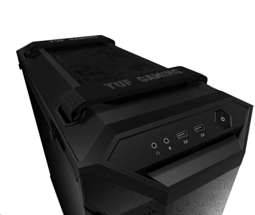 - Navrhnutý tak, aby si ho všimli: Kovový predný panel s vlastným vzorom TUF Gaming a 4 mm hrubý bočný panel z dymového temperovaného skla, ktorý ukazuje vnútorné prvky vašej zostavy.