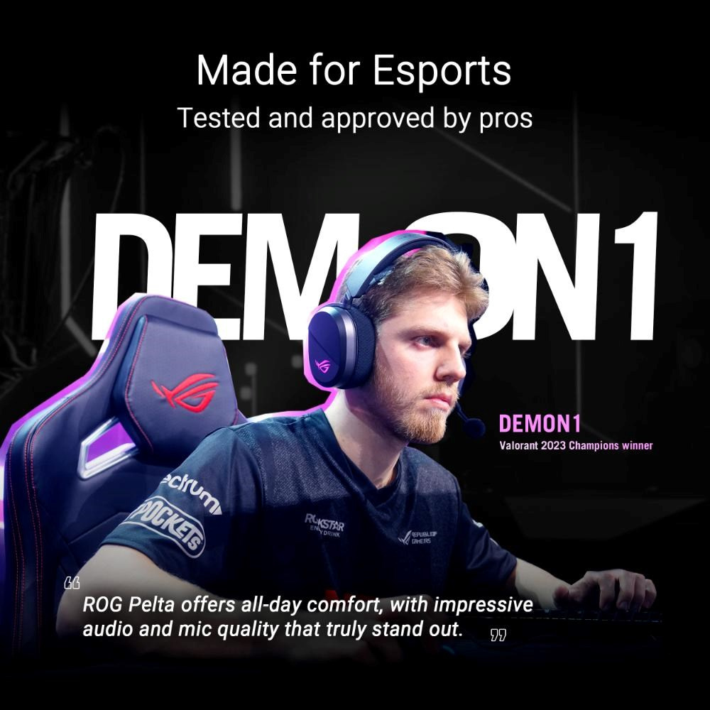 - 50mm meniče ROG s titanovou membránou: Exkluzívne meniče ROG zabezpečujú bohatý, detailný zvuk so širokou frekvenčnou odozvou 20 Hz–20 kHz