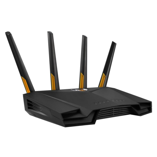 TUF Gaming AX3000 V2 Dual Band WiFi 6 Gaming Router with Mobile Game Mode, 3 steps port forwarding, 2.5Gbps port, AiMesh for mesh WiFi, AiProtection Pro network security Ultrafast WiFi 6 - Enjoy speeds up to 3000 Mbps and 4X network efficiency with OFDMA and 160 MHz channels. True Multi-Gigabit wired speeds - Aggregated 2 Gigabit LAN connections, wired 2.5Gbps port and WiFi 6. Easy Port Forwarding in 3 Steps - Open NAT makes port forwarding simple, eliminating frustrating and complicated manual configuration. ASUS AiMesh Support – Create a flexible, seamless whole-home mesh network with AiMesh-compatible routers. Tested Durability and Stable Operation - TUF Gaming AX3000 V2 is built to be durable and undergoes verified testing to ensure reliable, stable operation. 802.11a : up to 54 Mbps 802.11b : up to 11 Mbps 802.11g : up to 54 Mbps WiFi 5 (802.11ac) (1024QAM) : up to 867 Mbps WiFi 6 (802.11ax) (2.4GHz) : up to 574 Mbps WiFi 6 (802.11ax) (5GHz) : up to 2402 Mbps 2.4GHz 2x2 5GHz 2x2 RJ45 for 2.5 Gigabits BaseT for WAN x 1, RJ45 for Gigabits BaseT for LAN x 4, USB 3.2 Gen 1 x 1,.