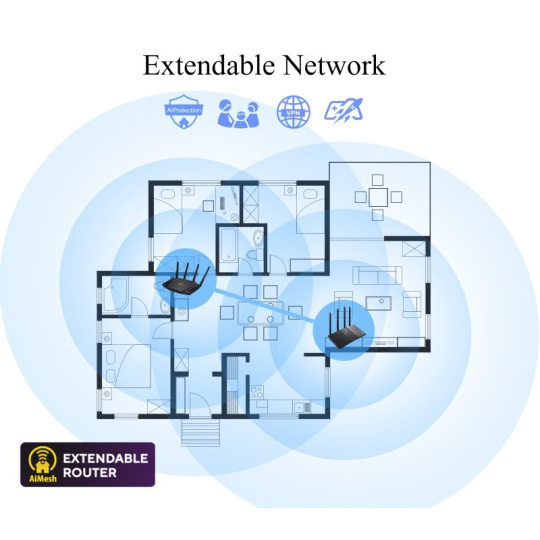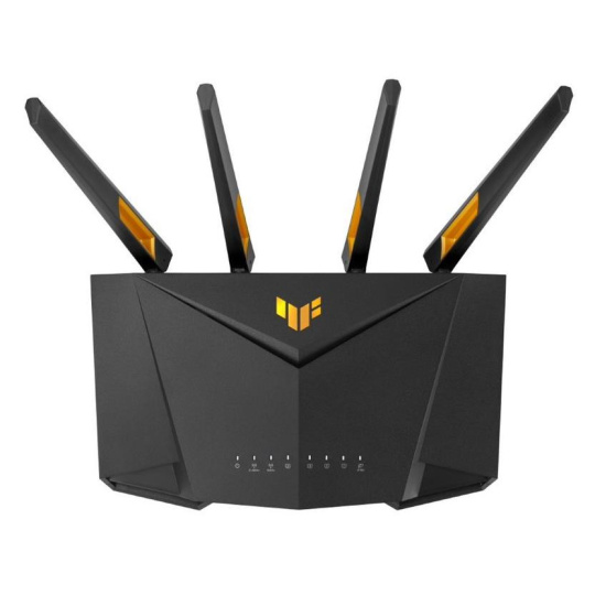 TUF Gaming AX4200 Dual Band WiFi 6 Gaming Router with Mobile Game Mode, 3 steps port forwarding, 2.5Gbps port, AiMesh for mesh WiFi, AiProtection Pro network security Ultrafast WiFi 6 - Enjoy speeds up to 4200 Mbps and 4X network efficiency with OFDMA and 160 MHz channels. True Multi-Gigabit wired speeds - Aggregated 2 Gigabit LAN connections, wired 2.5Gbps port and WiFi 6. Easy Port Forwarding in 3 Steps - Open NAT makes port forwarding simple, eliminating frustrating and complicated manual configuration. ASUS AiMesh Support – Create a flexible, seamless whole-home mesh network with AiMesh-compatible routers. Tested Durability and Stable Operation - TUF Gaming AX4200 is built to be durable and undergoes verified testing to ensure reliable, stable operation..