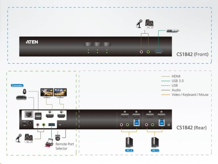 Prepínač KVM ATEN CS1942DP vám pomôže zorganizovať pracovnú plochu. Najmä pri správe multimediálnej pracovnej stanice vo veľkej organizácii ponúka CS1942DP používateľom okamžitý prístup k dvom počítačom,