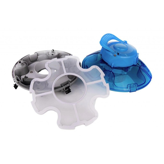 Vyčistenie vysávača od nahromadených nečistôt je jednoduché. Otvorením štyroch prackami sa vysávač rozdelí na dve časti (motor a filter), vyprázdnite a opláchnite sito pod tečúcou vodou.