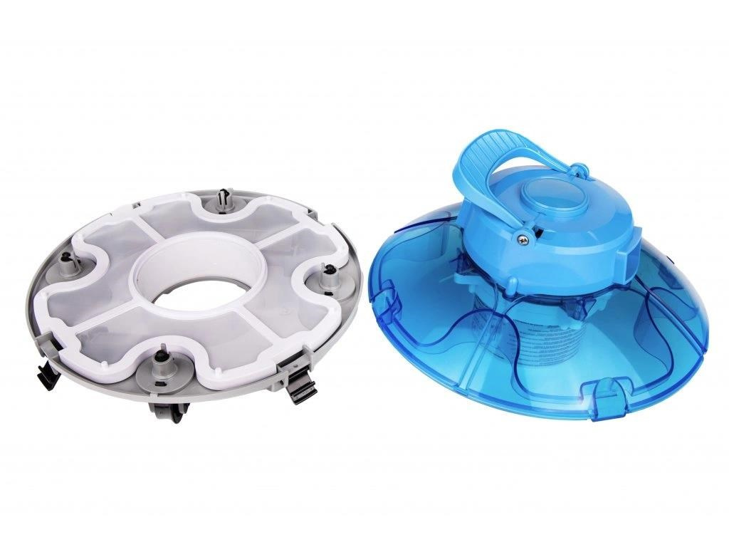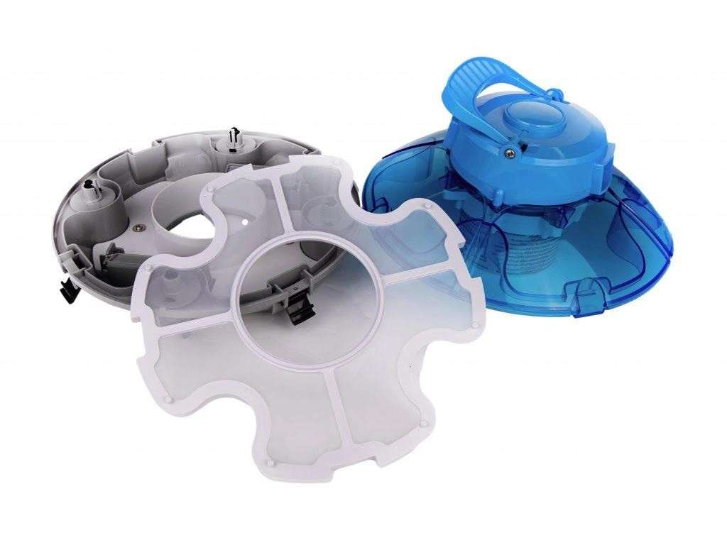 Vyčistenie vysávača od nahromadených nečistôt je jednoduché. Otvorením štyroch prackami sa vysávač rozdelí na dve časti (motor a filter), vyprázdnite a opláchnite sito pod tečúcou vodou.