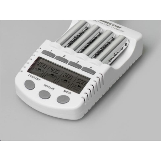 Inteligentná štyrikanálová nabíjačka tužkových AA a mikrotužkových AAA batérií. Nabíja Ni-MH a Ni-Cd batérie. Nabíjací prúd 200, 500, 700, a 1000mA.