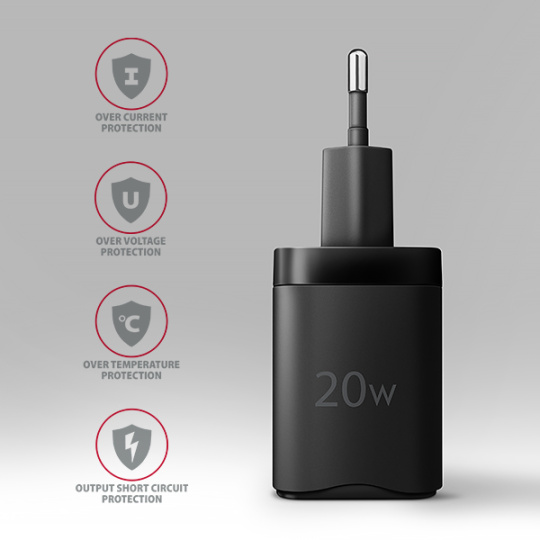 Pokročilý systém ochrany na výstupe nabíjacieho adaptéra chráni nabité zariadenie pred poškodením. Funkcia nabíjačky tiež zaisťuje, že nabíjané zariadenie je rozpoznané a je zvolená optimálna rýchlosť a priebeh nabíjania.