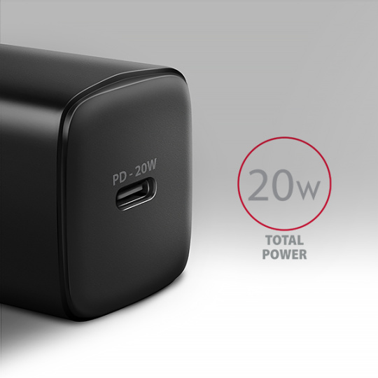 AXAGON ACU-PD20, nabíjačka do siete 20W, 1x port USB-C, PD3.0/PPS/QC4+/AFC/Apple, čierna