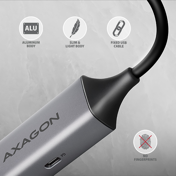Kovové puzdro adaptéra je vyrobené z hliníka a zaisťuje tak dokonalú mechanickú ochranu a vynikajúci odvod tepla. Jeho kompaktné rozmery a minimálna hmotnosť z neho robia ideálny doplnok pre notebooky a iné mobilné zariadenia.